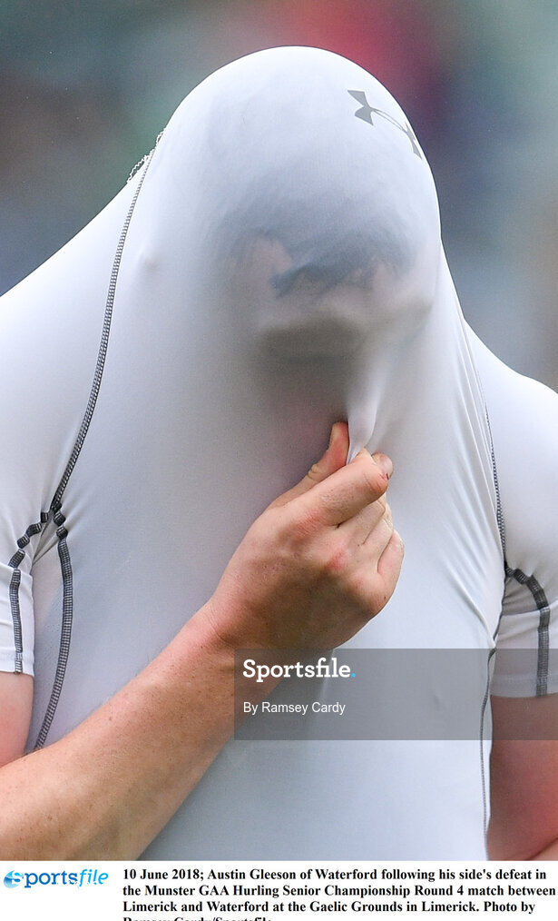 10 June 2018; Austin Gleeson of Waterford following his side's defeat in the Munster GAA Hurling Senior Championship Round 4 match between Limerick and Waterford at the Gaelic Grounds in Limerick. Photo by Ramsey Cardy/Sportsfile