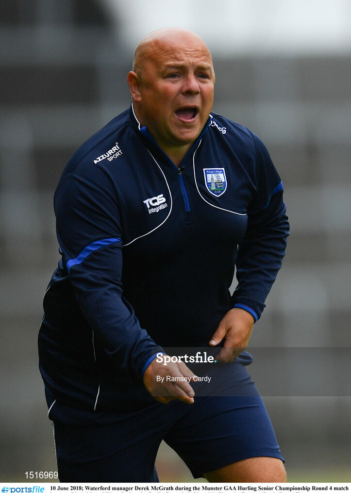 10 June 2018; Waterford manager Derek McGrath during the Munster GAA Hurling Senior Championship Round 4 match between Limerick and Waterford at the Gaelic Grounds in Limerick. Photo by Ramsey Cardy/Sportsfile