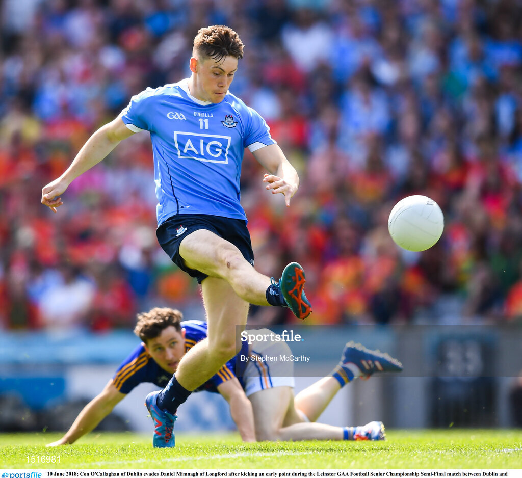 10 June 2018; Con O'Callaghan of Dublin evades Daniel Mimnagh of Longford after kicking an early point during the Leinster GAA Football Senior Championship Semi-Final match between Dublin and Longford at Croke Park in Dublin. Photo by Stephen McCarthy/Sportsfile