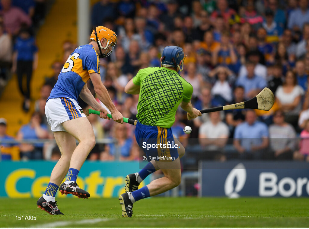 10 June 2018; Tipperary's Jake Morris fires a shot past the Clare goalkeeper, late in the game, only to have the sliothar hit a post during the Munster GAA Hurling Senior Championship Round 4 match between Tipperary and Clare at Semple Stadium in Thurles, Tipperary. Photo by Ray McManus/Sportsfile