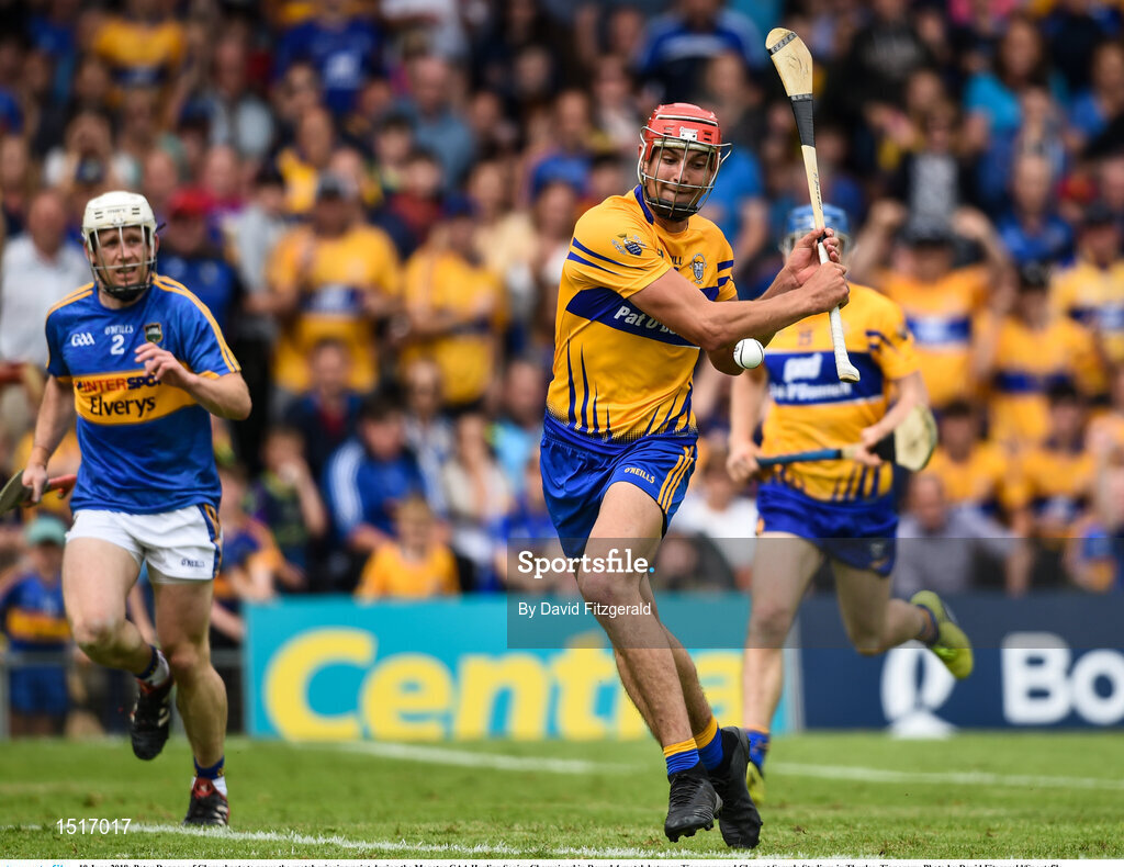 10 June 2018; Peter Duggan of Clare shoots to score the match winning point during the Munster GAA Hurling Senior Championship Round 4 match between Tipperary and Clare at Semple Stadium in Thurles, Tipperary. Photo by David Fitzgerald/Sportsfile