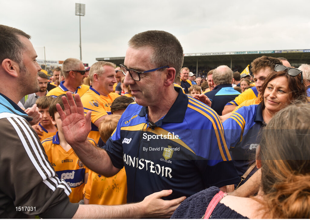 10 June 2018; Clare joint-manager Gerry O'Connor is congratulated by supporters following the Munster GAA Hurling Senior Championship Round 4 match between Tipperary and Clare at Semple Stadium in Thurles, Tipperary. Photo by David Fitzgerald/Sportsfile