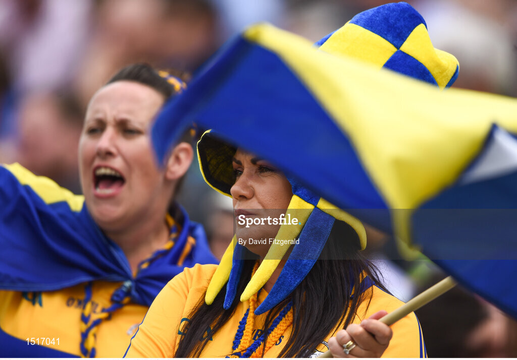 10 June 2018; Clare supporters celebrate a late point during the Munster GAA Hurling Senior Championship Round 4 match between Tipperary and Clare at Semple Stadium in Thurles, Tipperary. Photo by David Fitzgerald/Sportsfile