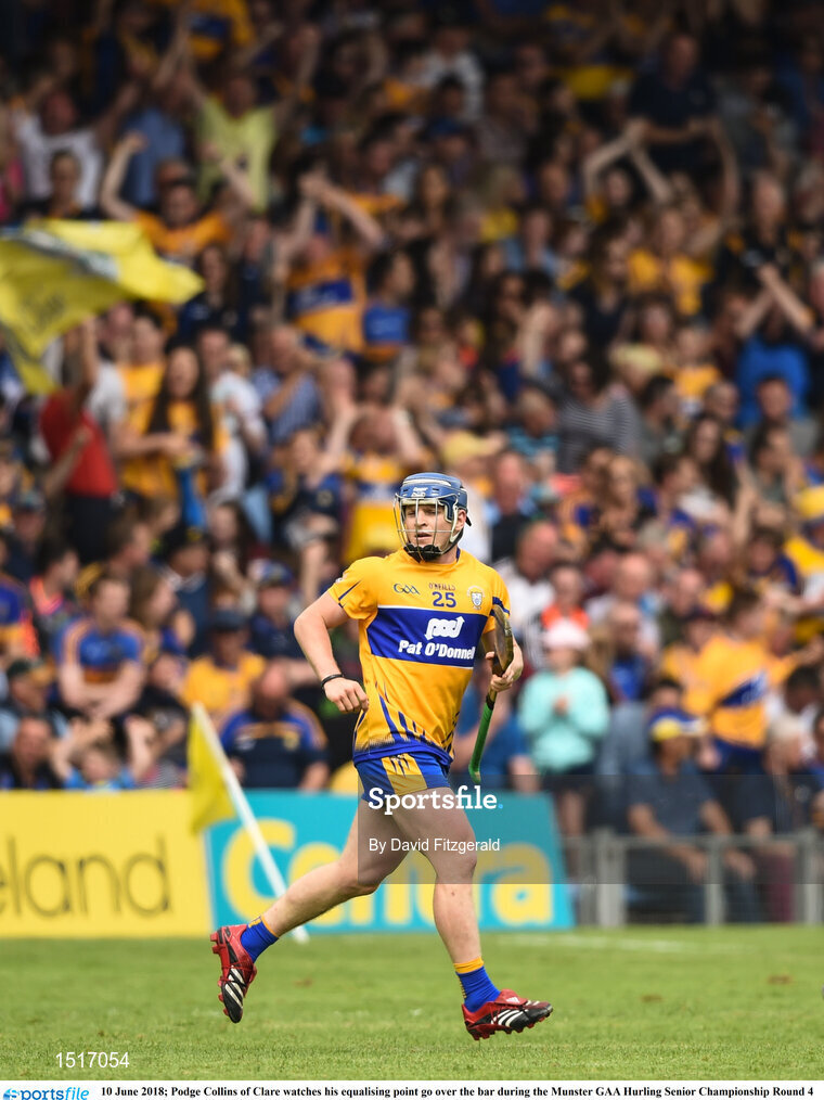 10 June 2018; Podge Collins of Clare watches his equalising point go over the bar during the Munster GAA Hurling Senior Championship Round 4 match between Tipperary and Clare at Semple Stadium in Thurles, Tipperary. Photo by David Fitzgerald/Sportsfile