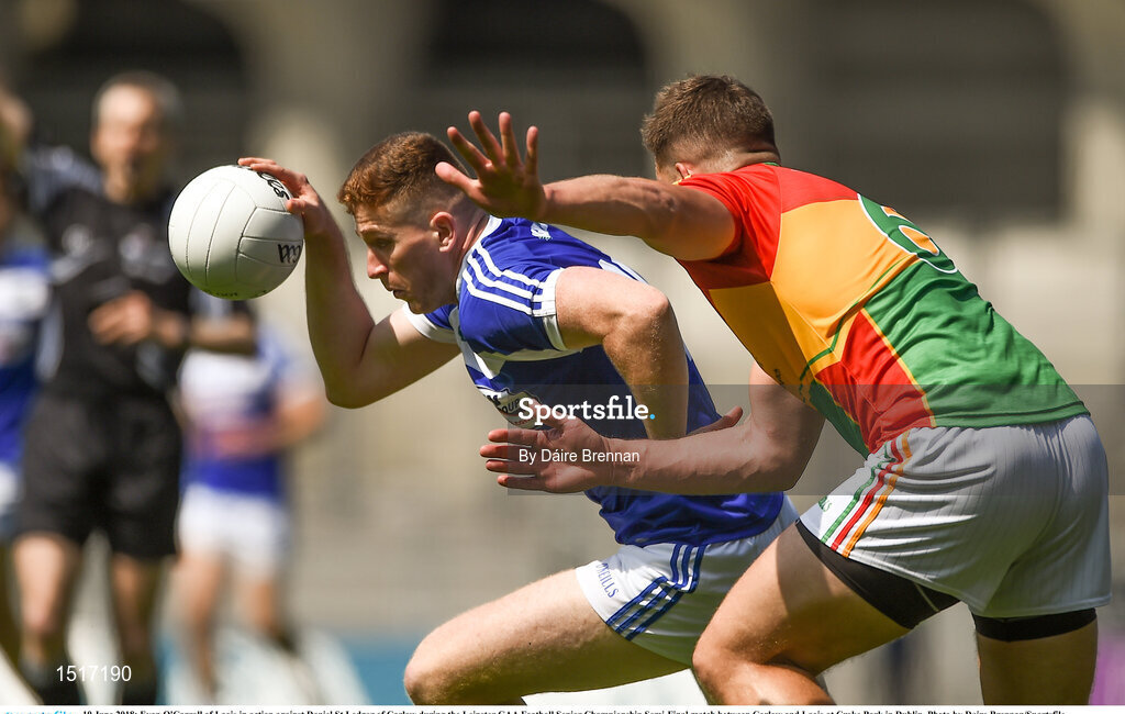 10 June 2018; Evan O'Carroll of Laois in action against Daniel St Ledger of Carlow during the Leinster GAA Football Senior Championship Semi-Final match between Carlow and Laois at Croke Park in Dublin. Photo by Daire Brennan/Sportsfile