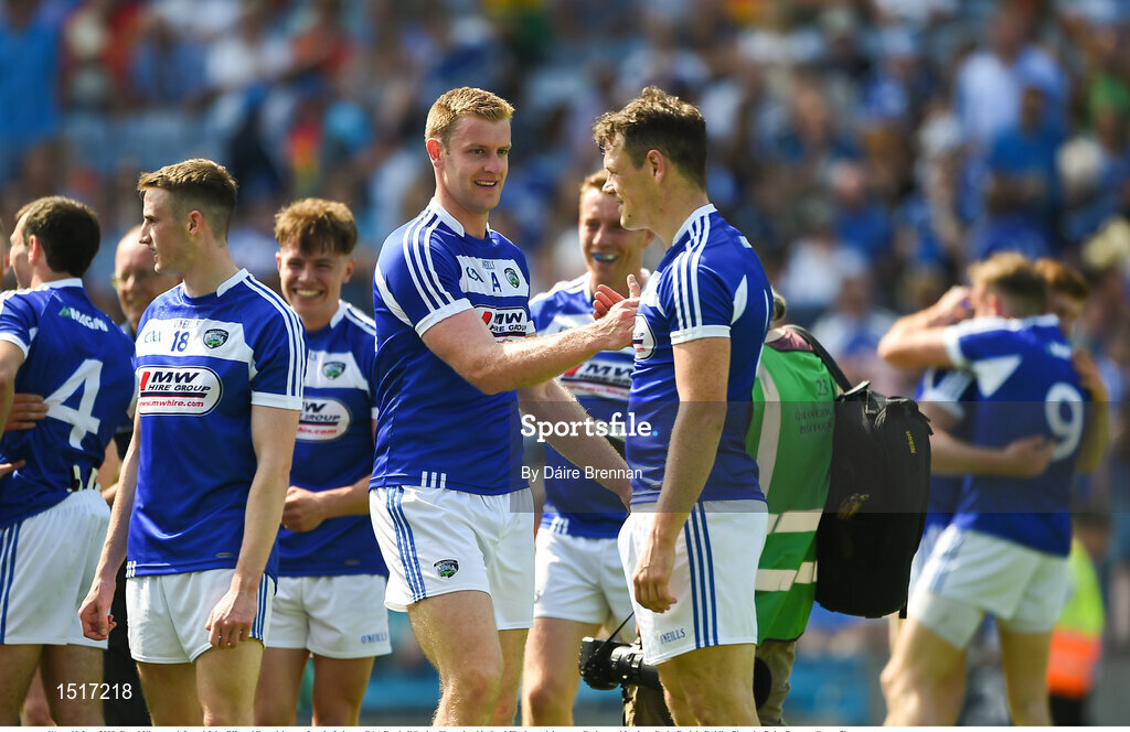 10 June 2018; Donal Kingston, left, and John O'Loughlin, celebrate after the Leinster GAA Football Senior Championship Semi-Final match between Carlow and Laois at Croke Park in Dublin. Photo by Daire Brennan/Sportsfile
