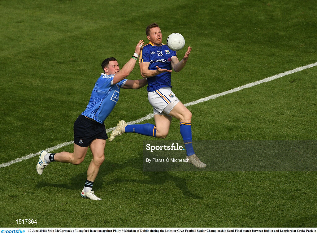 10 June 2018; Seán McCormack of Longford in action against Philly McMahon of Dublin during the Leinster GAA Football Senior Championship Semi-Final match between Dublin and Longford at Croke Park in Dublin. Photo by Piaras Ó Mídheach/Sportsfile