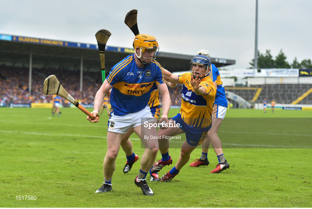 10 June 2018; Donagh Maher of Tipperary in action against Podge Collins of Clare during the Munster GAA Hurling Senior Championship Round 4 match between Tipperary and Clare at Semple Stadium in Thurles, Tipperary. Photo by David Fitzgerald/Sportsfile