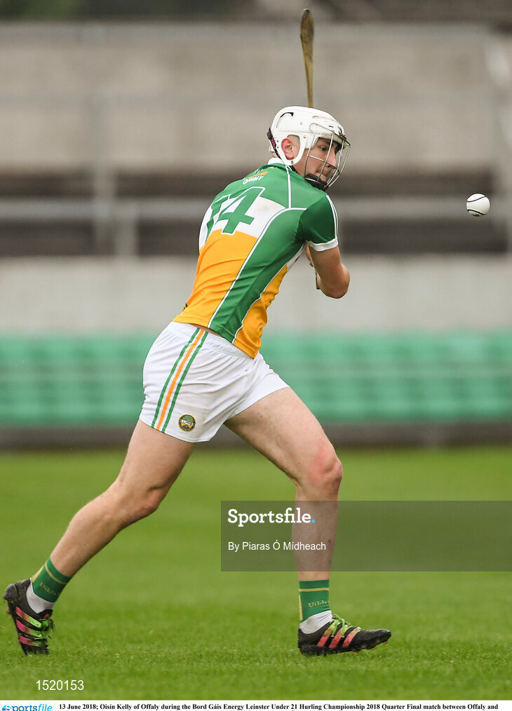 13 June 2018; Oisín Kelly of Offaly during the Bord Gáis Energy Leinster Under 21 Hurling Championship 2018 Quarter Final match between Offaly and Galway at Bord Na Móna O'Connor Park, in Tullamore, Offaly. Photo by Piaras Ó Mídheach/Sportsfile
