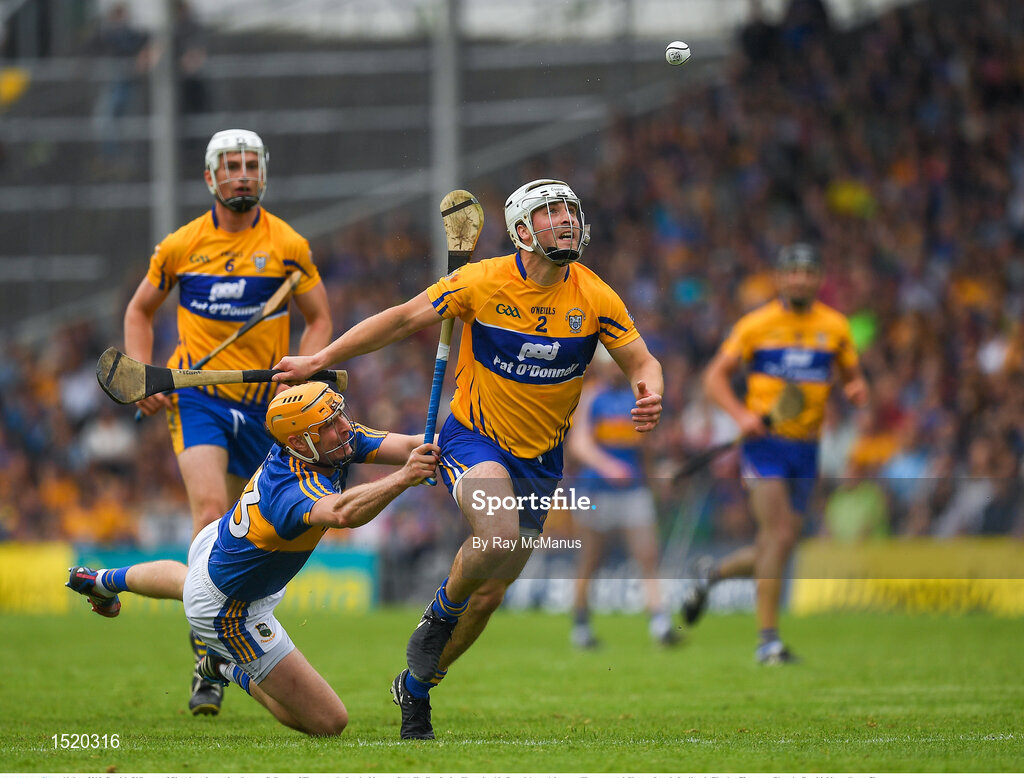 10 June 2018; Patrick O'Connor of Clare in action against Seamus Callanan of Tipperary during the Munster GAA Hurling Senior Championship Round 4 match between Tipperary and Clare at Semple Stadium in Thurles, Tipperary. Photo by Ray McManus/Sportsfile