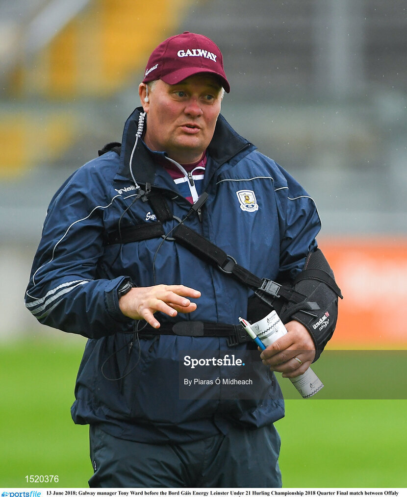 13 June 2018; Galway manager Tony Ward before the Bord Gáis Energy Leinster Under 21 Hurling Championship 2018 Quarter Final match between Offaly and Galway at Bord Na Móna O'Connor Park, in Tullamore, Offaly. Photo by Piaras Ó Mídheach/Sportsfile
