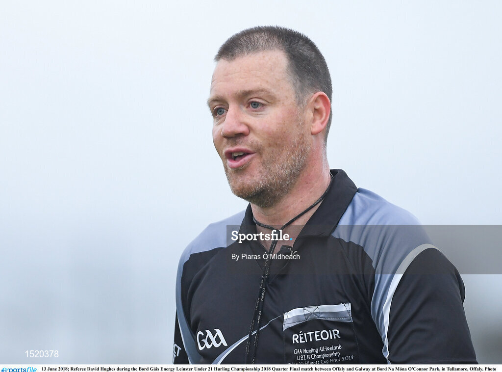 13 June 2018; Referee David Hughes during the Bord Gáis Energy Leinster Under 21 Hurling Championship 2018 Quarter Final match between Offaly and Galway at Bord Na Móna O'Connor Park, in Tullamore, Offaly. Photo by Piaras Ó Mídheach/Sportsfile