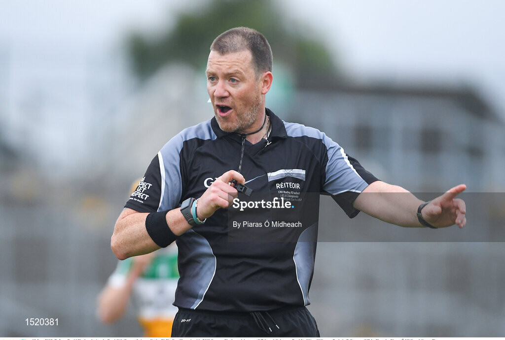 13 June 2018; Referee David Hughes during the Bord Gáis Energy Leinster Under 21 Hurling Championship 2018 Quarter Final match between Offaly and Galway at Bord Na Móna O'Connor Park, in Tullamore, Offaly. Photo by Piaras Ó Mídheach/Sportsfile