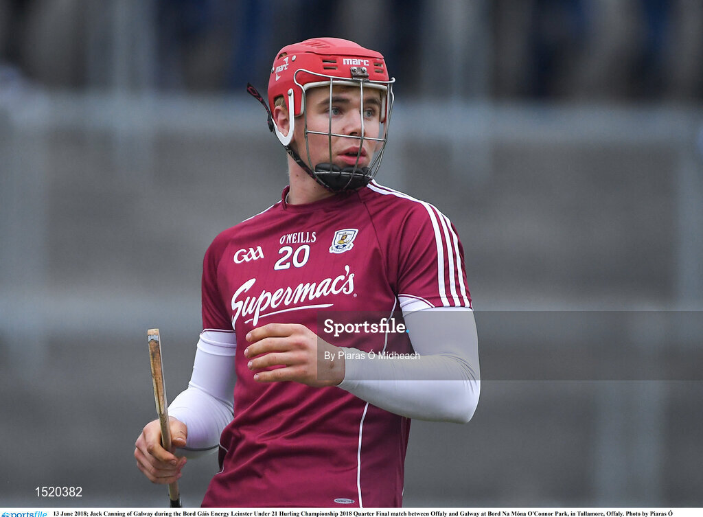 13 June 2018; Jack Canning of Galway during the Bord Gáis Energy Leinster Under 21 Hurling Championship 2018 Quarter Final match between Offaly and Galway at Bord Na Móna O'Connor Park, in Tullamore, Offaly. Photo by Piaras Ó Mídheach/Sportsfile