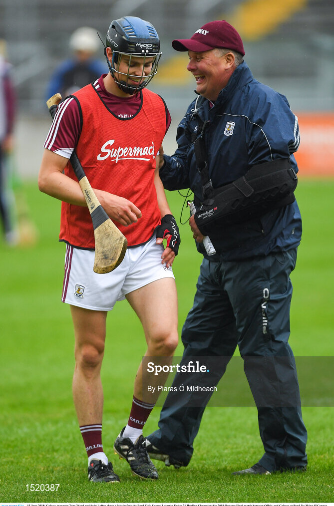 13 June 2018; Galway manager Tony Ward and Seán Loftus share a joke before the Bord Gáis Energy Leinster Under 21 Hurling Championship 2018 Quarter Final match between Offaly and Galway at Bord Na Móna O'Connor Park, in Tullamore, Offaly. Photo by Piaras Ó Mídheach/Sportsfile