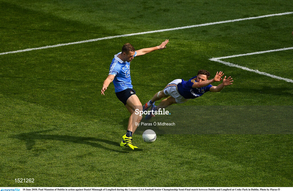 10 June 2018; Paul Mannion of Dublin in action against Daniel Mimnagh of Longford during the Leinster GAA Football Senior Championship Semi-Final match between Dublin and Longford at Croke Park in Dublin. Photo by Piaras Ó Mídheach/Sportsfile