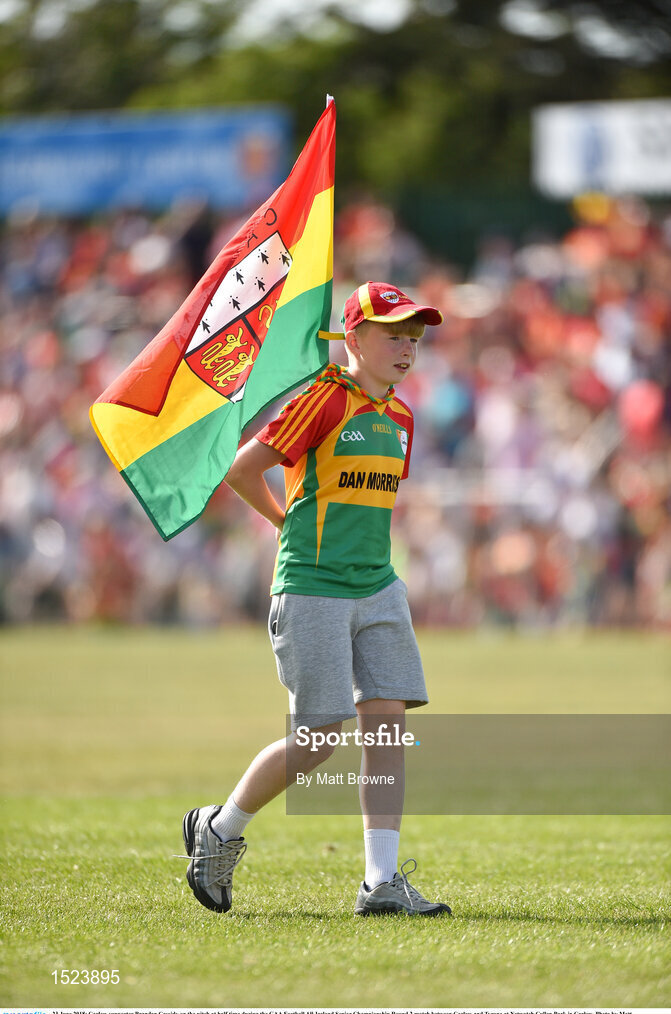 23 June 2018; Carlow supporter Brandon Cassidy on the pitch at half time during the GAA Football All-Ireland Senior Championship Round 2 match between Carlow and Tyrone at Netwatch Cullen Park in Carlow. Photo by Matt Browne/Sportsfile