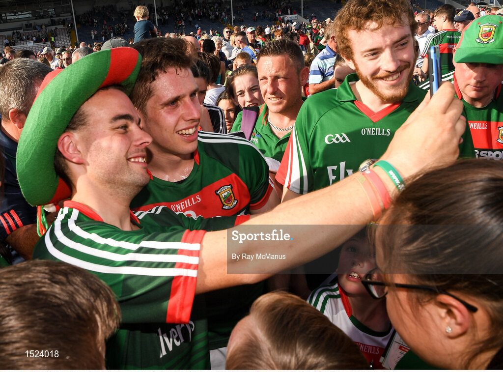 23 June 2018; Lee Keegan of Mayo poses for a photo with a Mayo supporter after the GAA Football All-Ireland Senior Championship Round 2 match between Tipperary and Mayo at Semple Stadium in Thurles, Tipperary. Photo by Ray McManus/Sportsfile