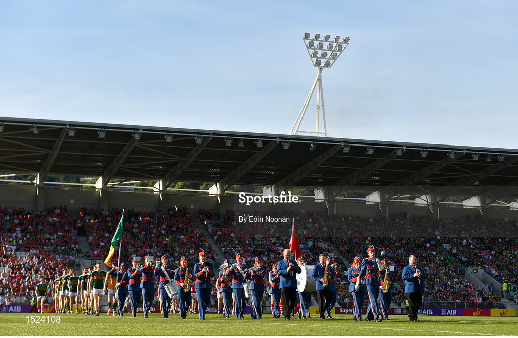 23 June 2018; Both teams march behind the band prior to the Munster GAA Football Senior Championship Final match between Cork and Kerry at Páirc Ui Chaoimh in Cork. Photo by Eóin Noonan/Sportsfile