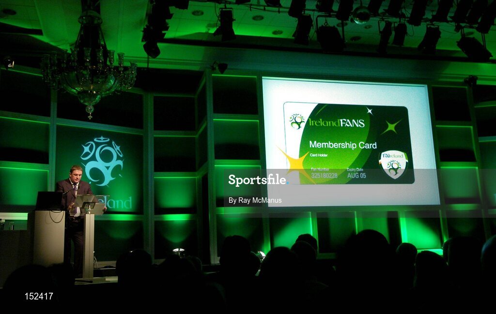 25 August 2004; Fran Rooney, CEO, FAI, at the launch of the Association's new logo, website, fans club and range of merchandise in Jury's Hotel, Dublin. Picture credit; Ray McManus / SPORTSFILE