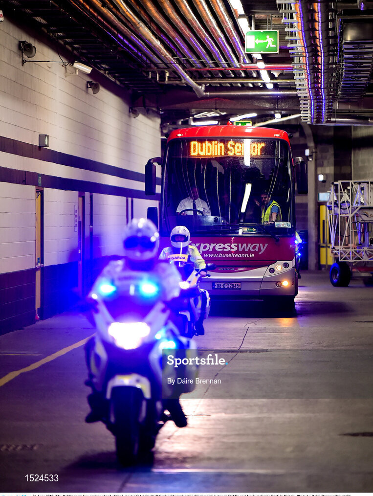 24 June 2018; The Dublin team bus arrives ahead of the Leinster GAA Football Senior Championship Final match between Dublin and Laois at Croke Park in Dublin. Photo by Daire Brennan/Sportsfile