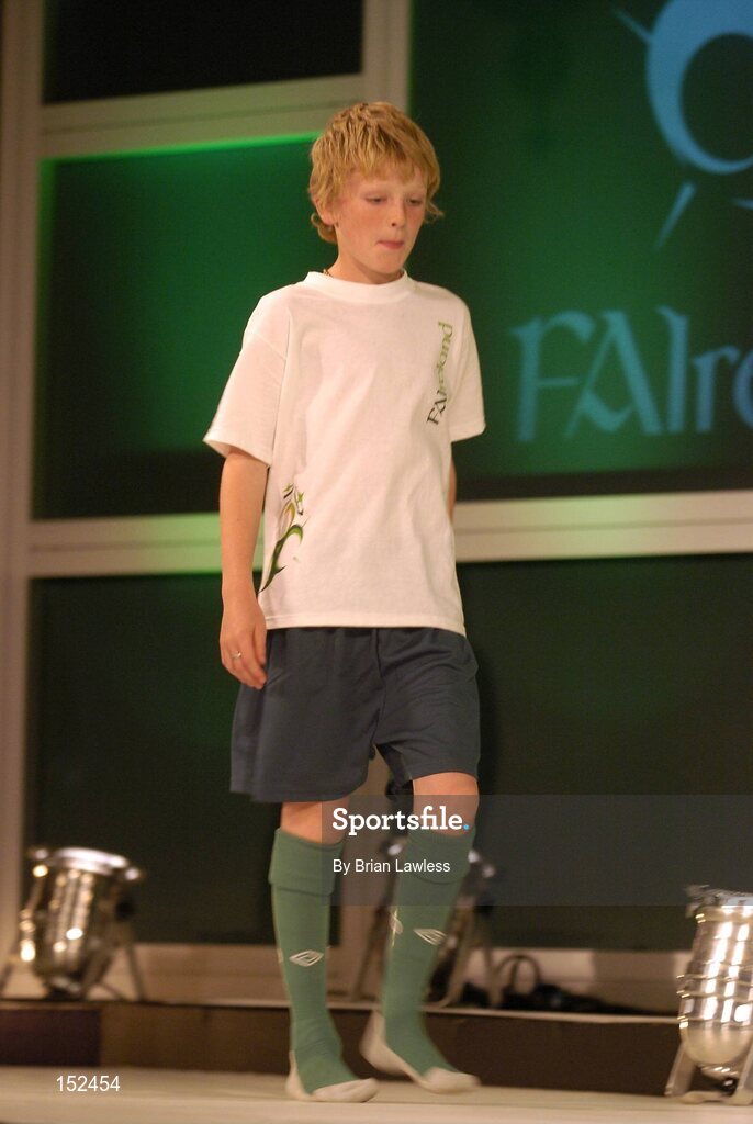25 August 2004; Model Calum Robinson at the launch of the Association's new logo, website, fans club and range of merchandise in Jury's Hotel, Dublin. Picture credit; Brian Lawless / SPORTSFILE
