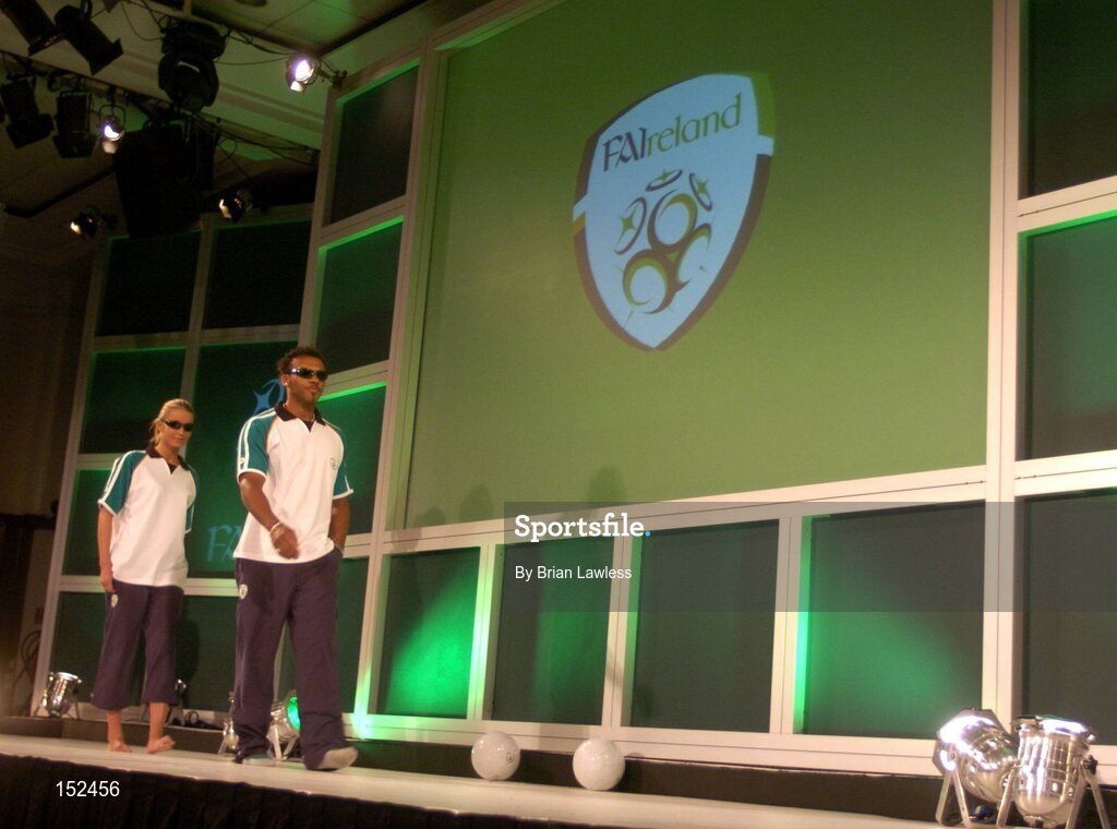 25 August 2004; Models Emy Onyesoh and Katy French at the launch of the Association's new logo, website, fans club and range of merchandise in Jury's Hotel, Dublin. Picture credit; Brian Lawless / SPORTSFILE