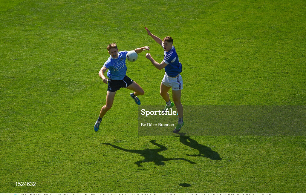 24 June 2018; Michael Fitzsimons of Dublin in action against Evan O'Carroll of Laois during the Leinster GAA Football Senior Championship Final match between Dublin and Laois at Croke Park in Dublin. Photo by Daire Brennan/Sportsfile
