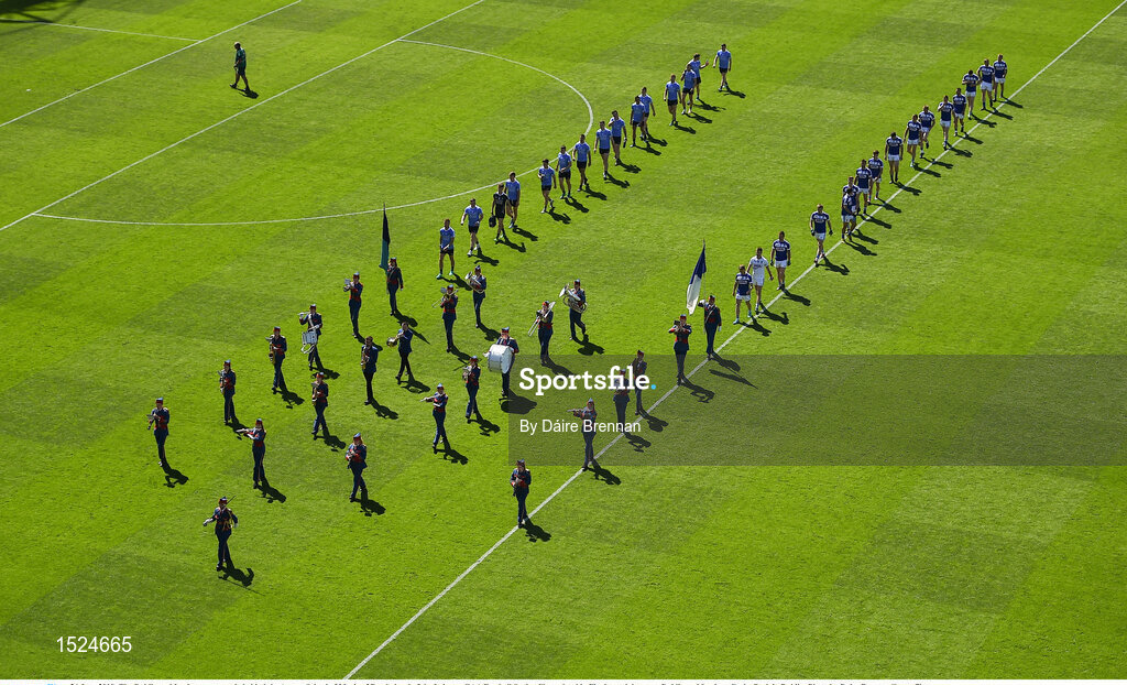 24 June 2018; The Dublin and Laois teams parade behind the Artane School of Music of Band ahead of the Leinster GAA Football Senior Championship Final match between Dublin and Laois at Croke Park in Dublin. Photo by Daire Brennan/Sportsfile