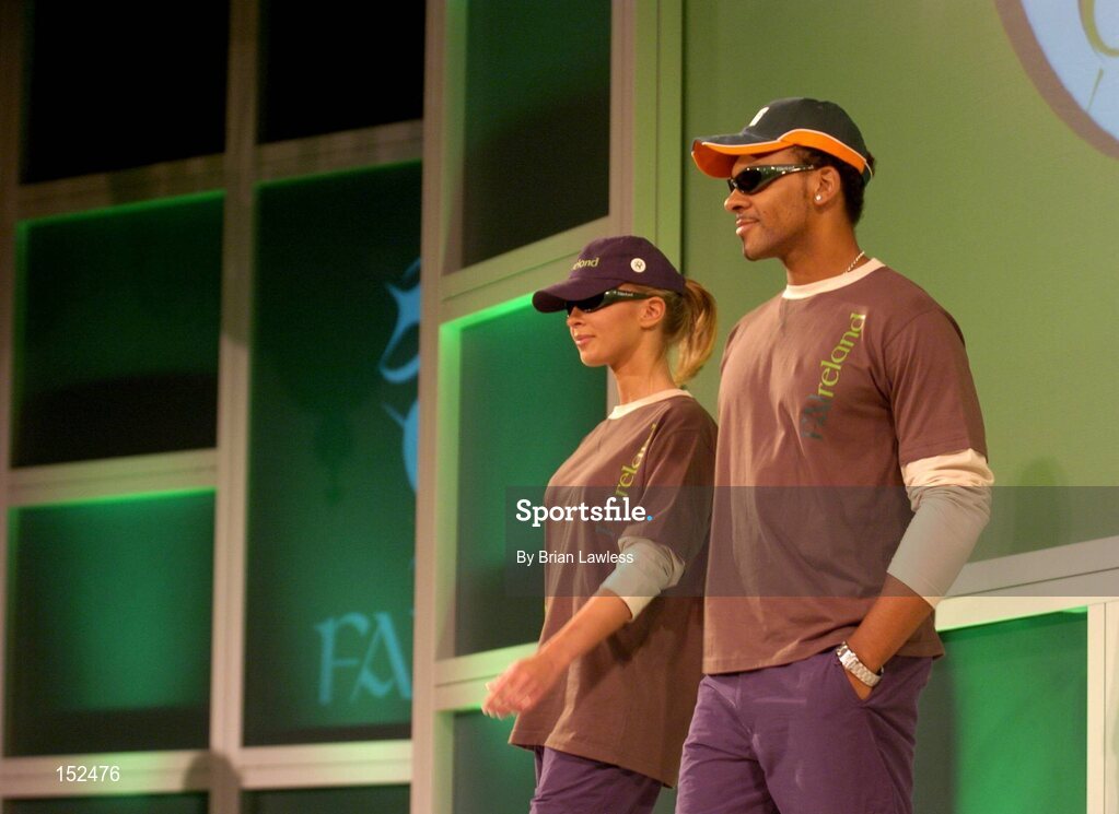 25 August 2004; Models Emy Onyesoh and Katy French show off some of the new merchandise at the launch of the Association's new logo, website, fans club and range of merchandise in Jury's Hotel, Dublin. Picture credit; Ray McManus / SPORTSFILE