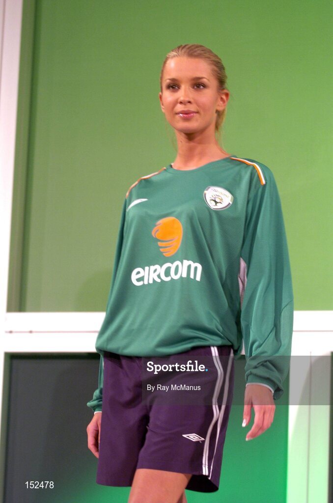 25 August 2004; Model Katy French shows off the new replica kit at the launch of the Association's new logo, website, fans club and range of merchandise in Jury's Hotel, Dublin. Picture credit; Ray McManus / SPORTSFILE