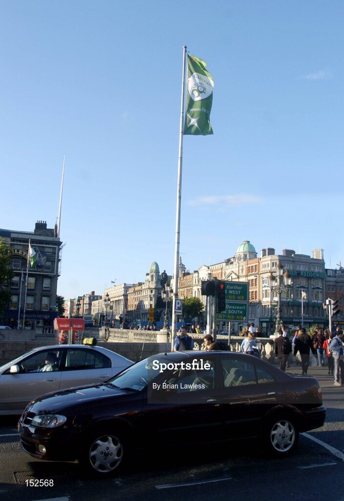 25 August 2004; A flag displaying the new FAI corporate identity flies on O'Connell Bridge, Dublin. Picture credit; Brian Lawless / SPORTSFILE