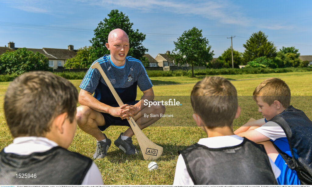 27 June 2018; Fergal Whitely of Dublin, centre, was in Ballyfermot Sports Complex today at the AIG Heroes event, an initiative which helps support local grassroots communities by partnering with Dublin GAA and others to use sport as a means to build self-confidence and social skills in young kids. To further promote these efforts AIG Insurance gifted GAA equipment to primary schools in the area. Photo by Sam Barnes/Sportsfile