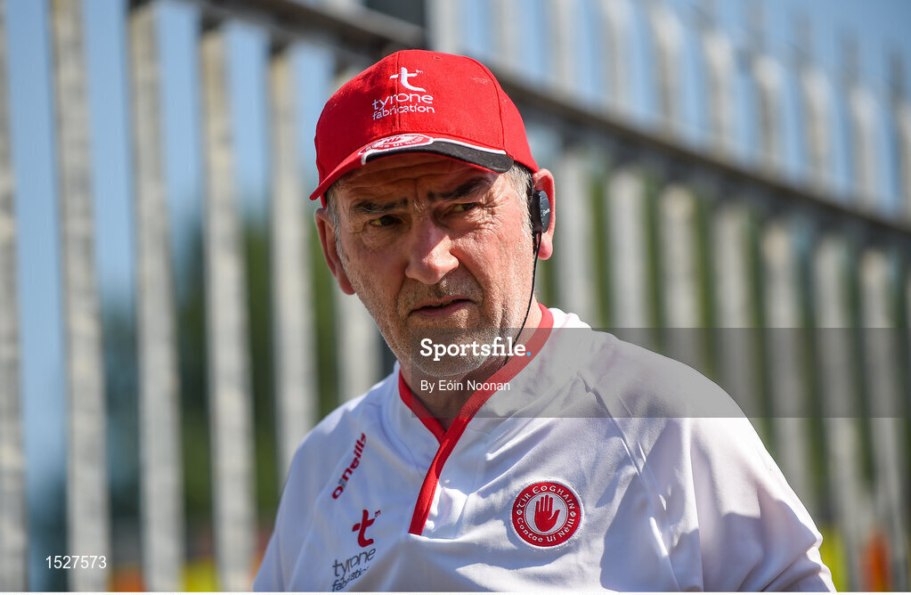 30 June 2018; Tyrone manager Mickey Harte ahead of the GAA Football All-Ireland Senior Championship Round 3 match between Cavan and Tyrone at Brewster Park in Enniskillen, Fermanagh. Photo by Eóin Noonan/Sportsfile
