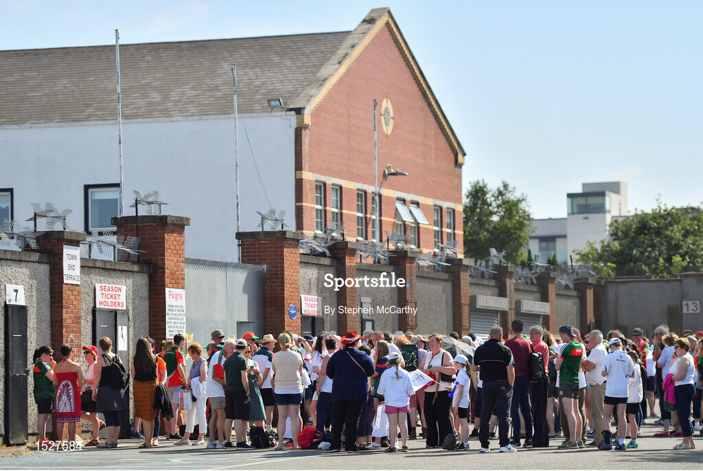 30 June 2018; Supporters queue to get into St Conleth's Park prior to the GAA Football All-Ireland Senior Championship Round 3 match between Kildare and Mayo at St Conleth's Park in Newbridge, Kildare. Photo by Stephen McCarthy/Sportsfile