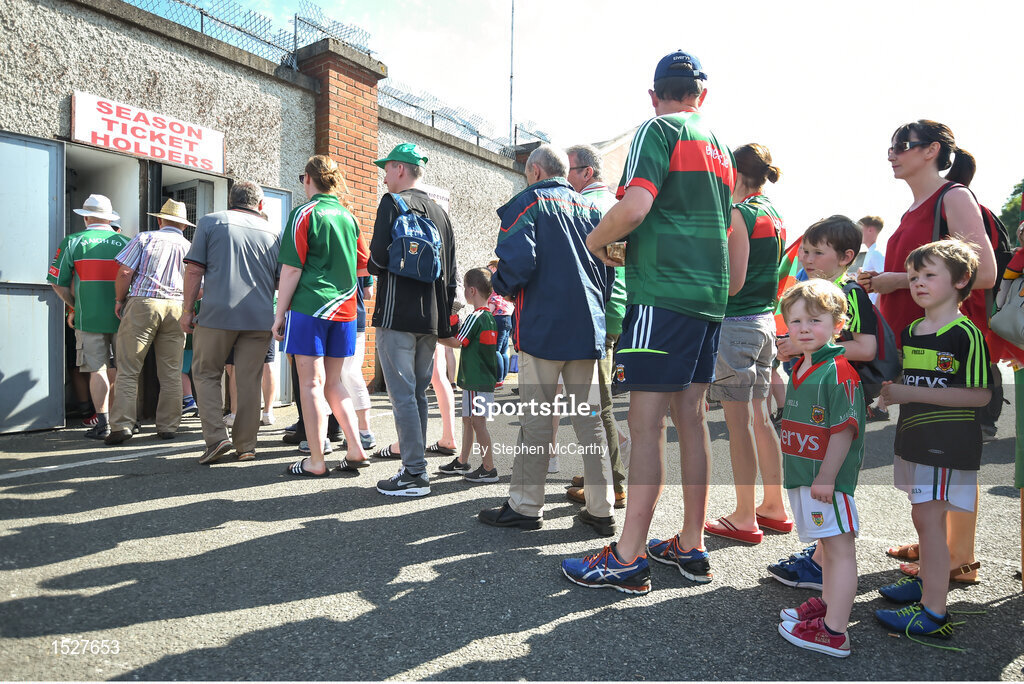30 June 2018; Mayo supporter Harry Lunn, age 4, from Breaffy, waits to enter the ground prior to the GAA Football All-Ireland Senior Championship Round 3 match between Kildare and Mayo at St Conleth's Park in Newbridge, Kildare. Photo by Stephen McCarthy/Sportsfile