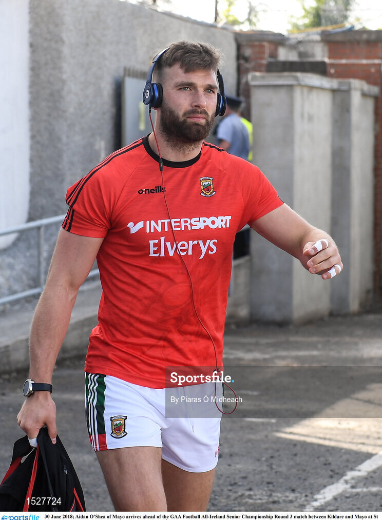 30 June 2018; Aidan O’Shea of Mayo arrives ahead of the GAA Football All-Ireland Senior Championship Round 3 match between Kildare and Mayo at St Conleth's Park in Newbridge, Kildare. Photo by Piaras Ó Mídheach/Sportsfile
