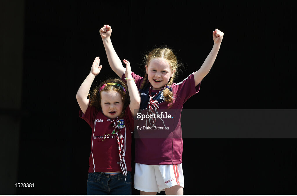 1 July 2018; Galway supporters Evanna Tully, age 5, left, and Erica Tully, age 8, from Ballinasloe, Co Galway ahead of the Leinster GAA Hurling Senior Championship Final match between Kilkenny and Galway at Croke Park in Dublin. Photo by Daire Brennan/Sportsfile