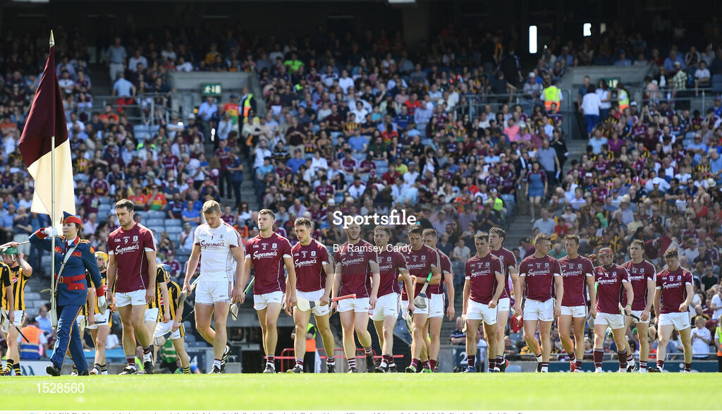 1 July 2018; The Galway team during the pre-match parade ahead of the Leinster GAA Hurling Senior Championship Final match between Kilkenny and Galway at Croke Park in Dublin. Photo by Ramsey Cardy/Sportsfile