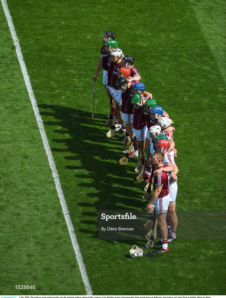1 July 2018; The Galway team stand together for the national anthem ahead of the Leinster GAA Hurling Senior Championship Final match between Kilkenny and Galway at Croke Park in Dublin. Photo by Daire Brennan/Sportsfile