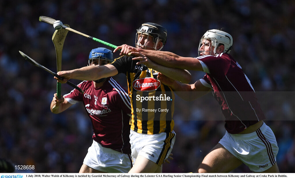 1 July 2018; Walter Walsh of Kilkenny is tackled by Gearóid McInerney of Galway during the Leinster GAA Hurling Senior Championship Final match between Kilkenny and Galway at Croke Park in Dublin. Photo by Ramsey Cardy/Sportsfile