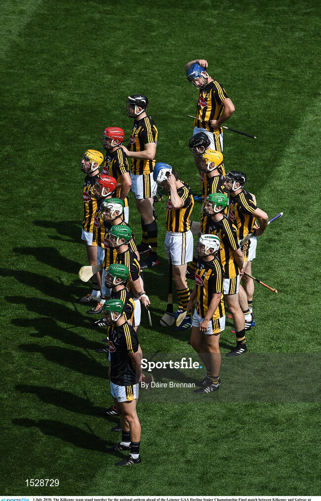 1 July 2018; The Kilkenny team stand together for the national anthem ahead of the Leinster GAA Hurling Senior Championship Final match between Kilkenny and Galway at Croke Park in Dublin. Photo by Daire Brennan/Sportsfile