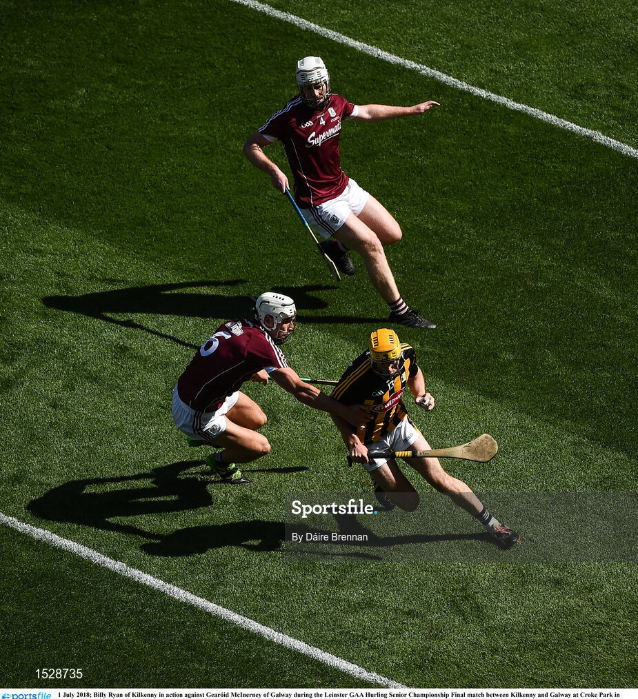 1 July 2018; Billy Ryan of Kilkenny in action against Gearóid McInerney of Galway during the Leinster GAA Hurling Senior Championship Final match between Kilkenny and Galway at Croke Park in Dublin. Photo by Daire Brennan/Sportsfile