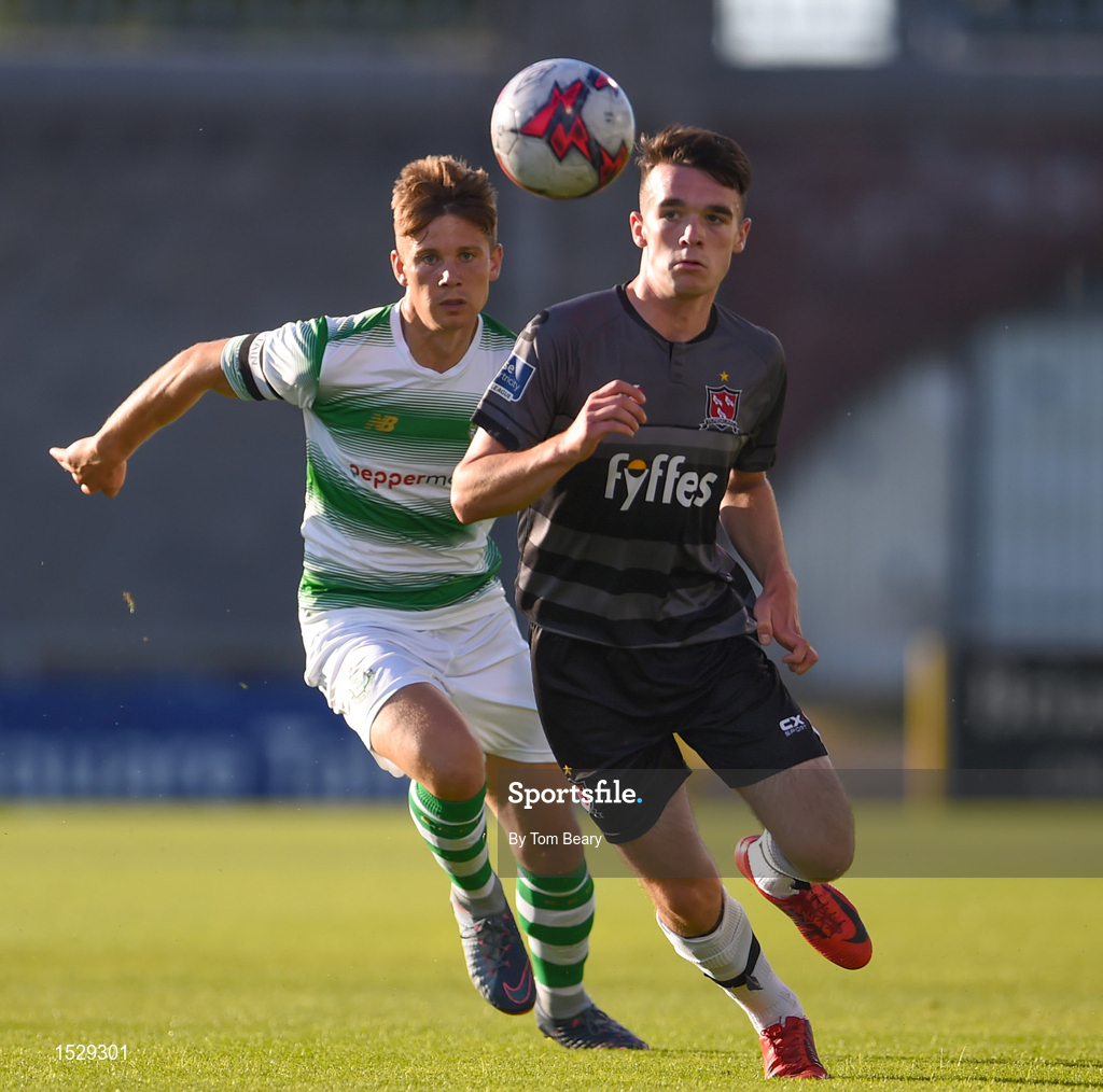 2 July 2018; Gavin Smith of Dundalk in action against Luke Byrne of Shamrock Rovers during the Leinster Senior Cup Quarter-Final match between Shamrock Rovers and Dundalk at Tallaght Stadium in Dublin. Photo by Tom Beary/Sportsfile