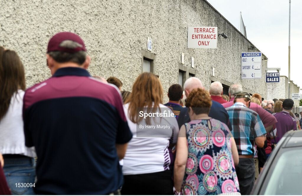 4 July 2018; Fans queue for tickets prior to the Bord Gais Energy Leinster Under 21 Hurling Championship 2018 Final match between Wexford and Galway at O'Moore Park in Portlaoise, Co Laois. Photo by Harry Murphy/Sportsfile