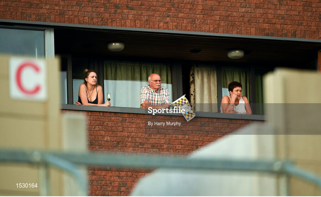 4 July 2018; Supporters watch on from a balcony during the Bord Gais Energy Leinster Under 21 Hurling Championship 2018 Final match between Wexford and Galway at O'Moore Park in Portlaoise, Co Laois. Photo by Harry Murphy/Sportsfile