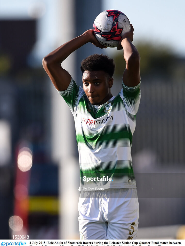 2 July 2018; Eric Abulu of Shamrock Rovers during the Leinster Senior Cup Quarter-Final match between Shamrock Rovers and Dundalk at Tallaght Stadium in Dublin. Photo by Tom Beary/Sportsfile