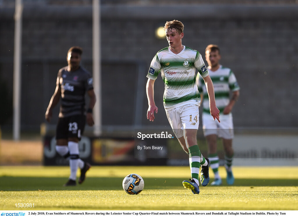 2 July 2018; Evan Smithers of Shamrock Rovers during the Leinster Senior Cup Quarter-Final match between Shamrock Rovers and Dundalk at Tallaght Stadium in Dublin. Photo by Tom Beary/Sportsfile