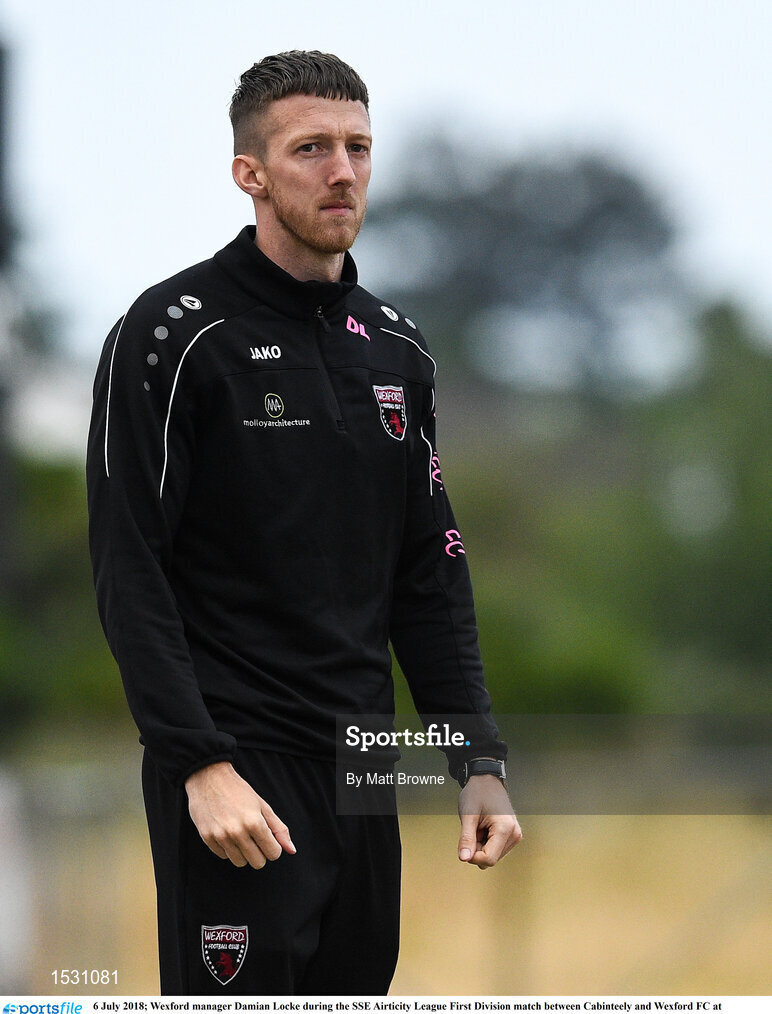 6 July 2018; Wexford manager Damian Locke during the SSE Airticity League First Division match between Cabinteely and Wexford FC at Stradbrook in Dublin. Photo by Matt Browne/Sportsfile