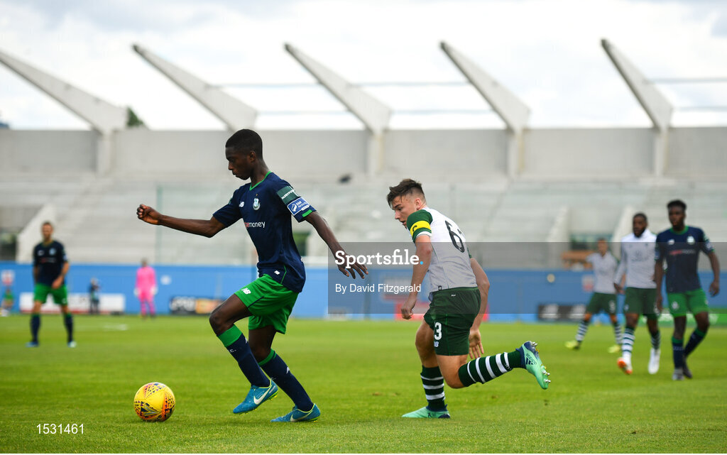 7 July 2018; Martins Olakanye of Shamrock Rovers in action against Kieran Tierney of Celtic during the friendly match between Shamrock Rovers and Glasgow Celtic at Tallaght Stadium in Tallaght, Co. Dublin. Photo by David Fitzgerald/Sportsfile